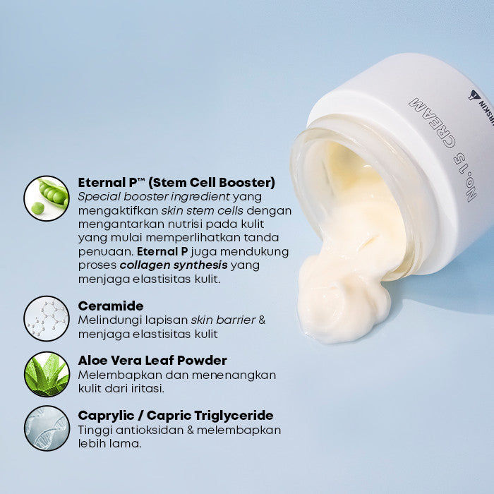 Moisturizer dengan tekstur unik seperti serat keju mozarella yang melembapkan & menutrisi selama 48-jam. Cream yang berasal dari Stem Cell Booster Eternal P™ dapat membantu mengangkat kulit secara perlahan, juga membantu mengencangkan dan memberikan kontur pada bentuk wajah.