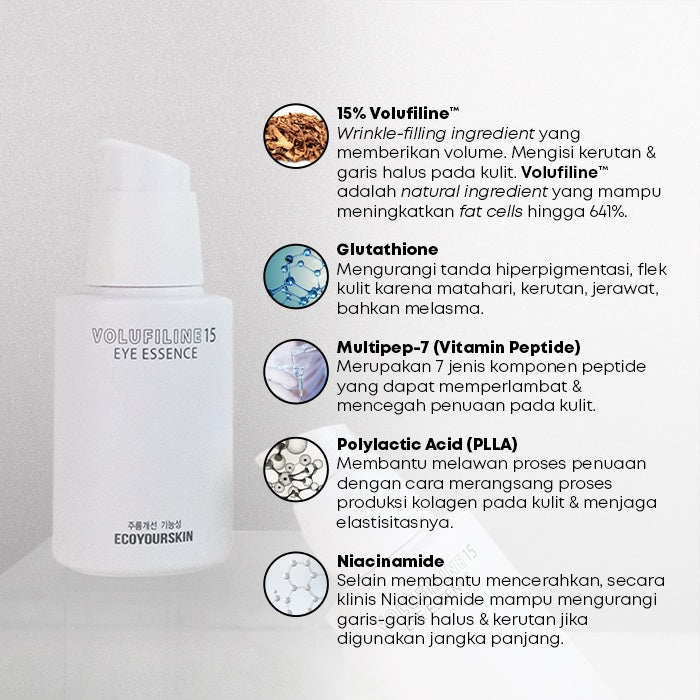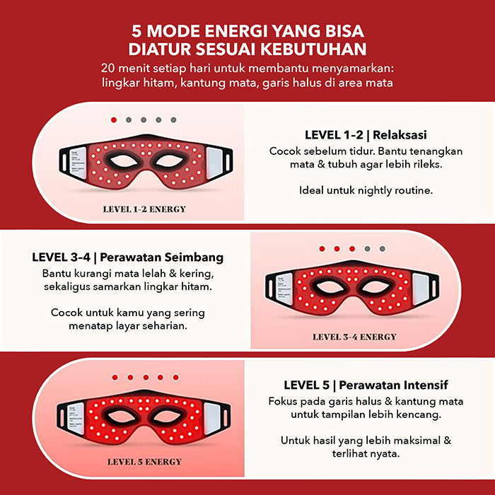 Rahasia efektivitas duo ini terletak pada sinergi antara stimulasi cahaya dan nutrisi mendalam. Glowthera LED Eye Mask menggunakan teknologi Dual-Wavelength (630nm Red Light & 850nm Near-Infrared) yang bekerja hingga lapisan kulit terdalam untuk memicu produksi kolagen alami dan melancarkan sirkulasi darah. Sesaat setelah terapi cahaya, aplikasikan EYS Volufiline 15 Eye Essence yang kaya akan Glutathione dan Peptides. Kandungan 15% Volufiline di dalamnya bekerja seperti "filler" alami yang mengisi kekosongan jaringan kulit, sehingga area bawah mata dan kelopak mata yang mulai kendur tampak lebih bervolume, kenyal, dan kencang seketika.